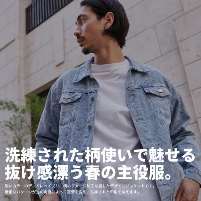 デニムジャケット Gジャン メンズ ブランド アウター おしゃれ ブルゾン ペイズリー ヴィンテージ ビンテージ ダメージ加工 ライトアウター 大人 ブラック ブルー M L 大人 20代 30代 40代 ユニセックス 男性 男 服 春 夏 夏服 春夏 ファッション [CARE25-10]