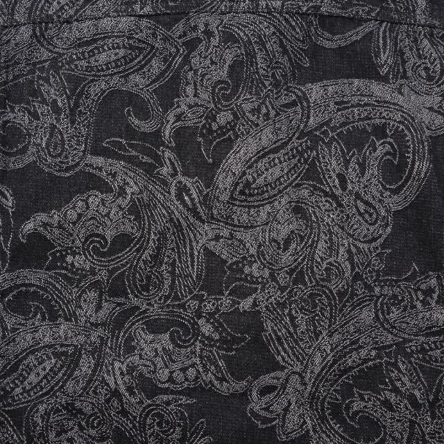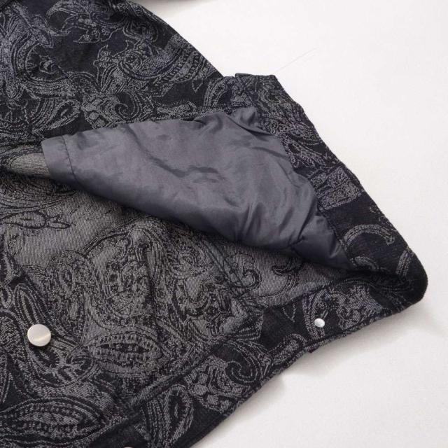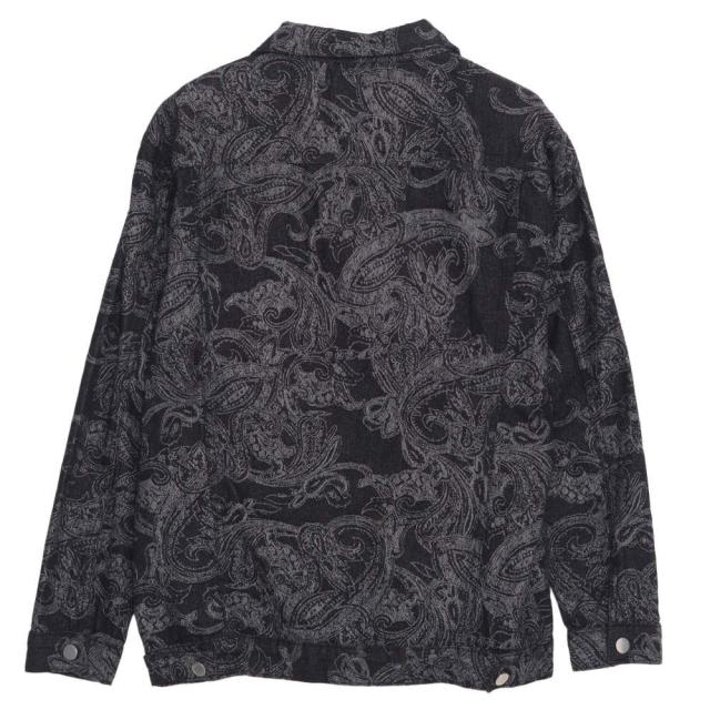 淡いカラーのデニムにペイズリー柄のダメージ加工を施したデザインジャケットです。