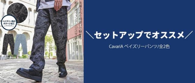 同素材を使用したペイズリーパンツも展開しており、セットアップでの着用も可能です。