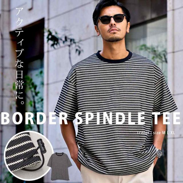 夏場のメイントップスに間違いないスピンドル付きのボーダー柄の半袖Tシャツ。