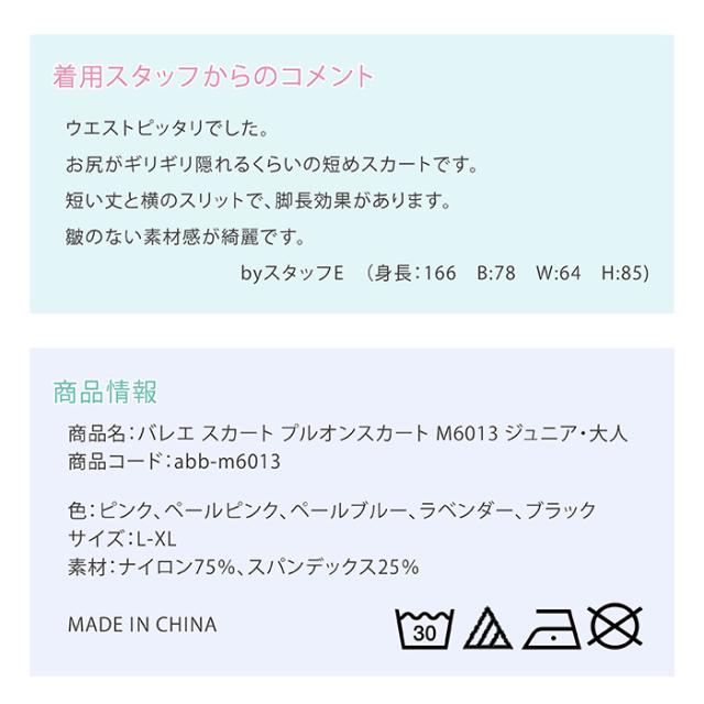 商品名:バレエ スカート プルオンスカート M6013 ジュニア・大人