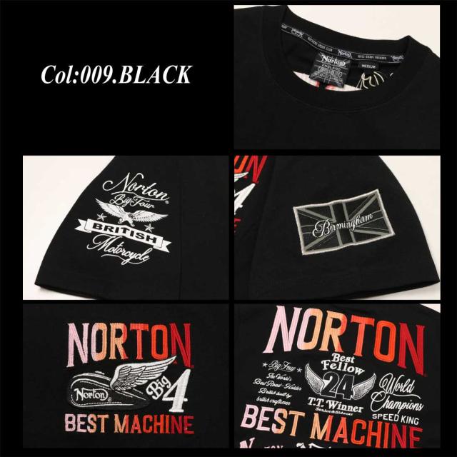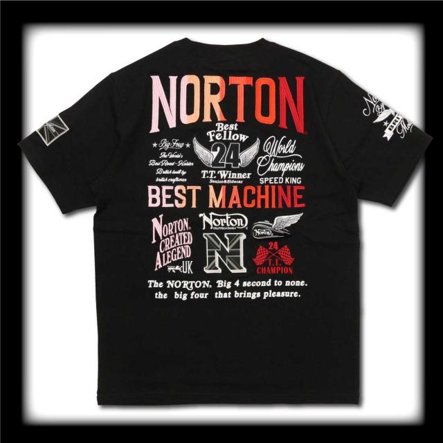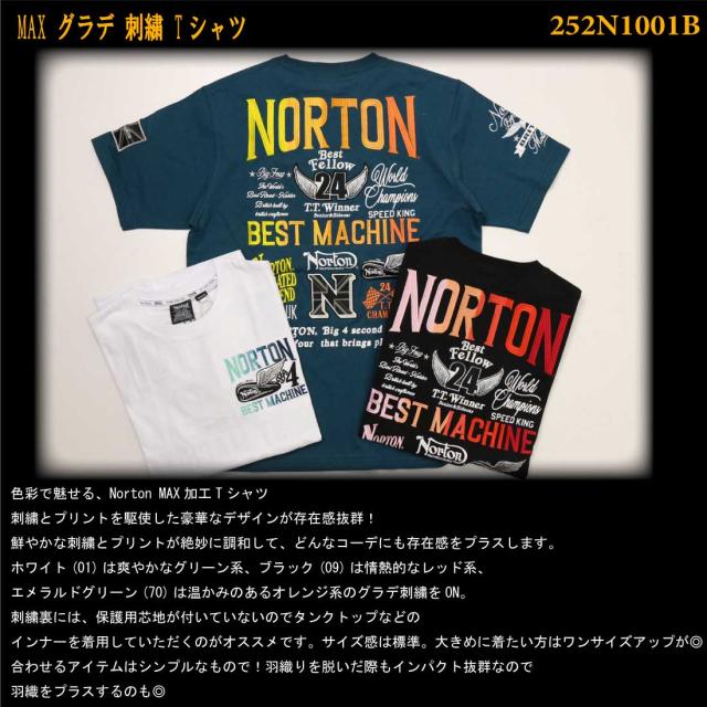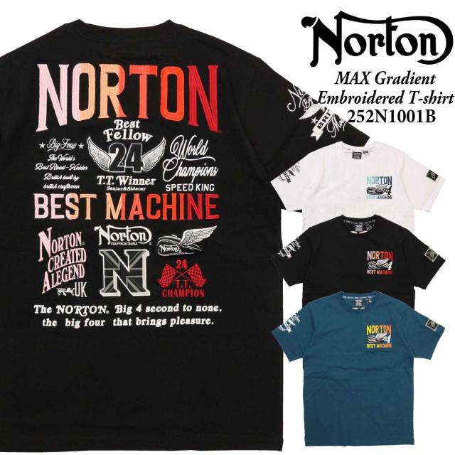 Norton ノートン 服 半袖 Tシャツ 252N1001B MAX グラデ 刺繍 プリント MAX加工Tシャツ クルーネック アメカジ バイカー メンズ