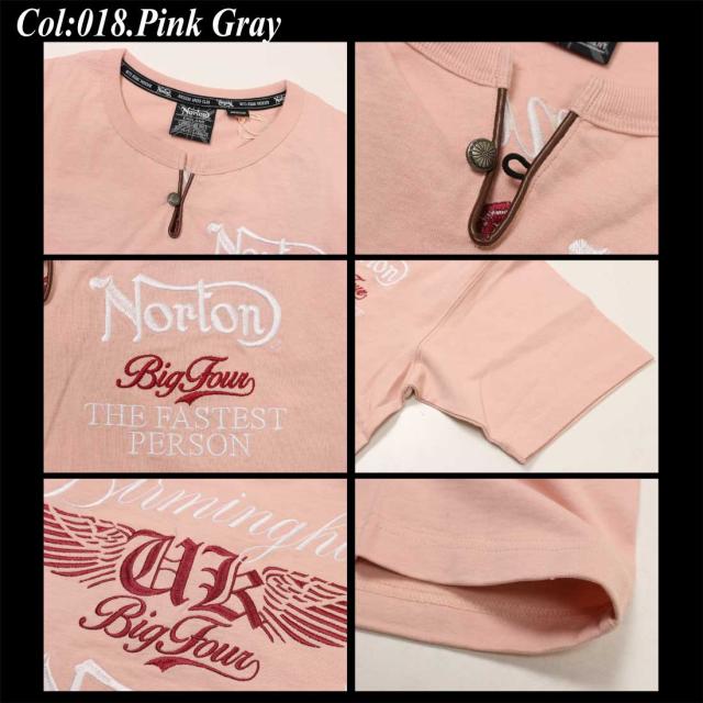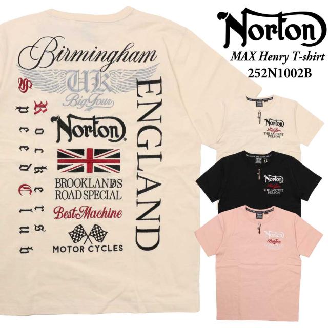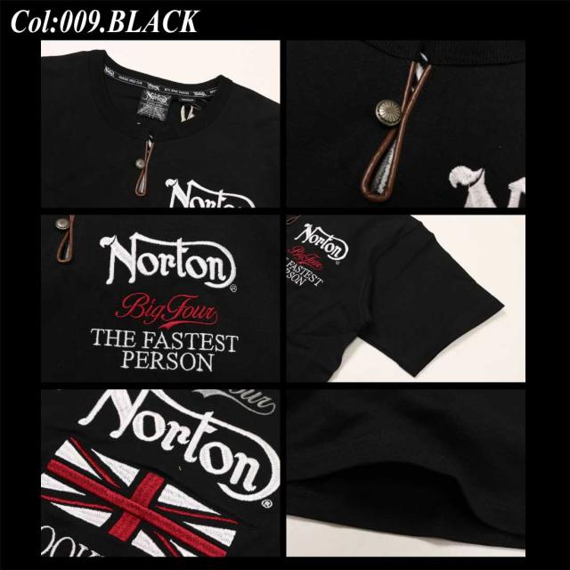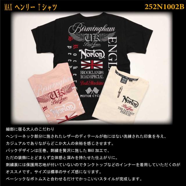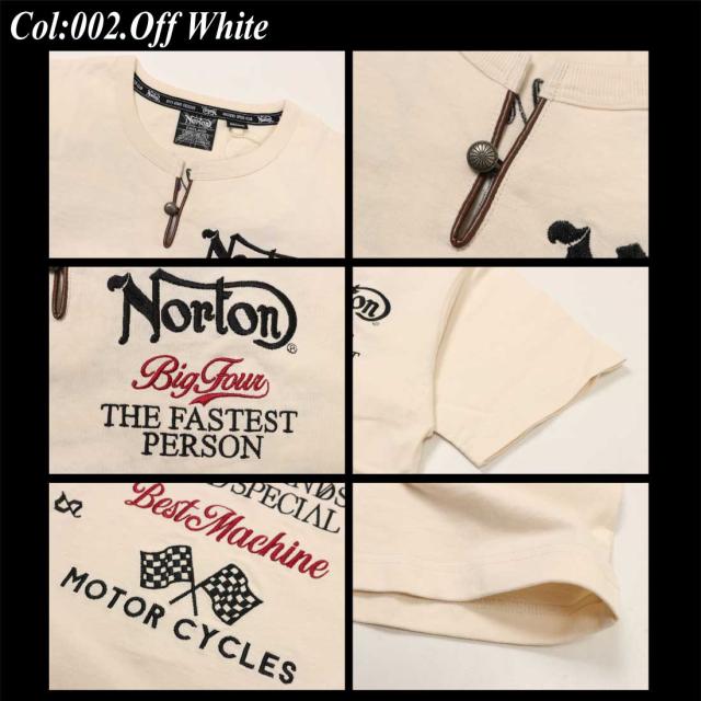 Norton ノートン 服 半袖 Tシャツ 252N1002B MAX ヘンリー Tシャツ レザー ヘンリーネック 刺繍 プリント アメカジ バイカー メンズ