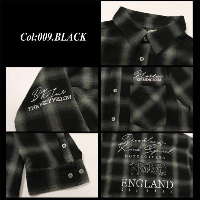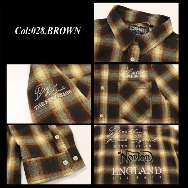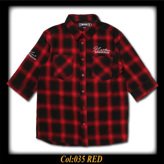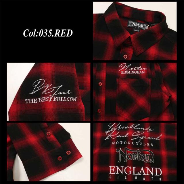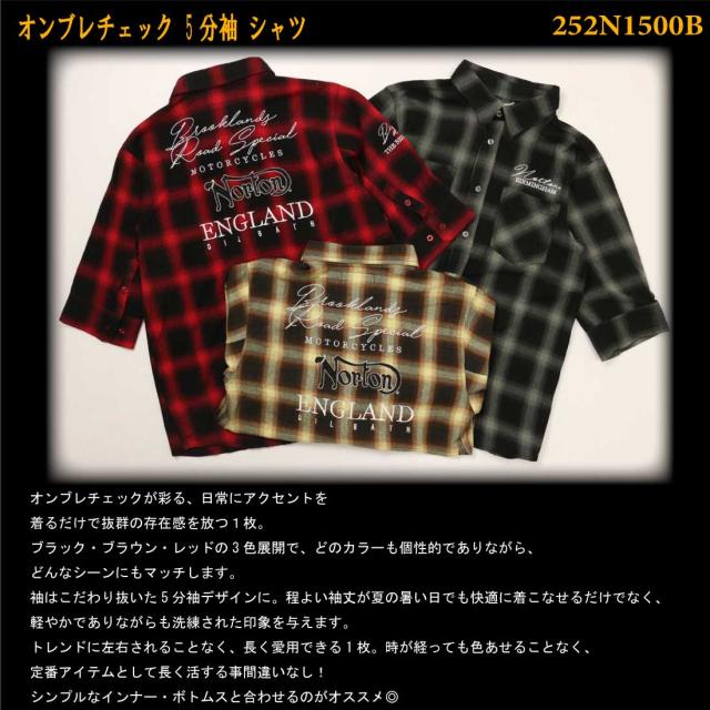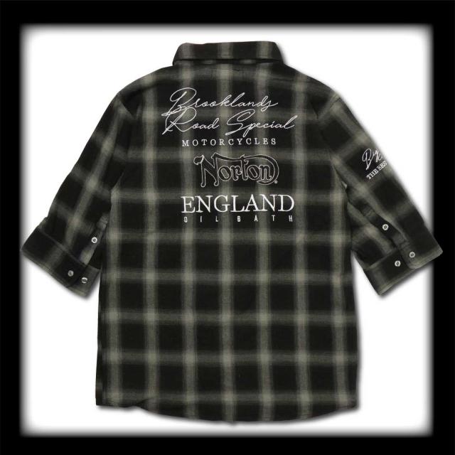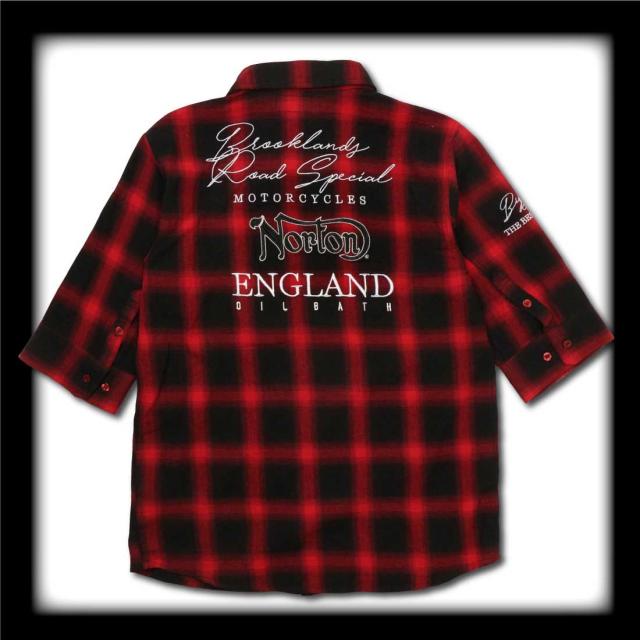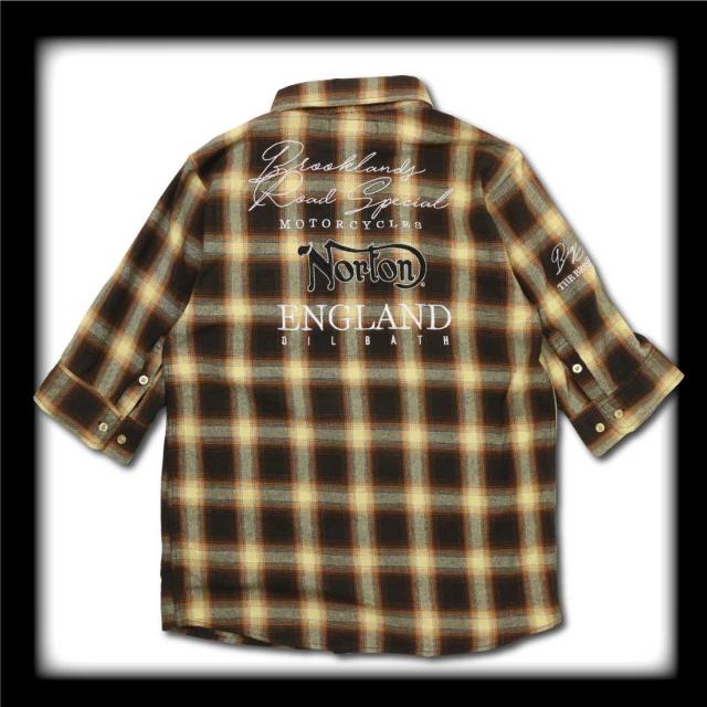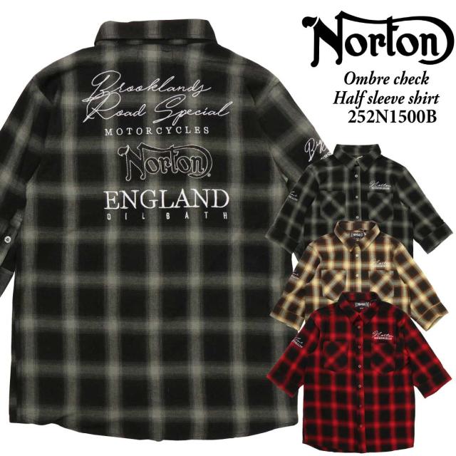 Norton ノートン 服 5分袖 シャツ 252N1500B オンブレチェック 5分袖シャツ 刺繍 チェック アメカジ バイカー メンズ