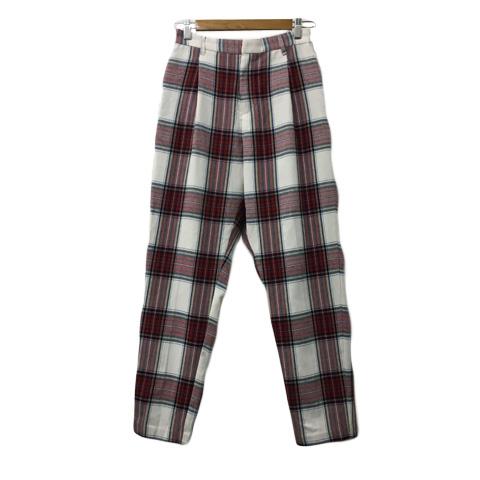 【中古】ニコアンド パンツ テーパード ロング チェック ウエストゴム 3 M 白 赤 ホワイト レッド レディース