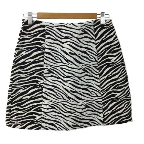 【中古】ザラ ベーシック スカート 台形 ミニ 総柄 マフポケット USA M 白 黒 ホワイト ブラック レディース