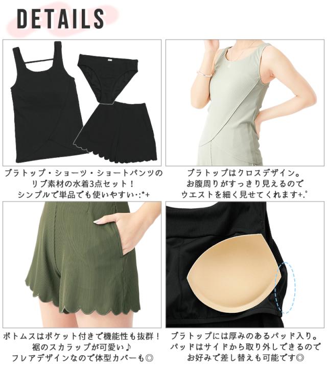 商品カテゴリ : レディース 女性 ママ 水着 スイム ウェア タンキニ キュロット パンツ ショーツ 体型カバー 3点 セット 20代 30代 40代 ママ