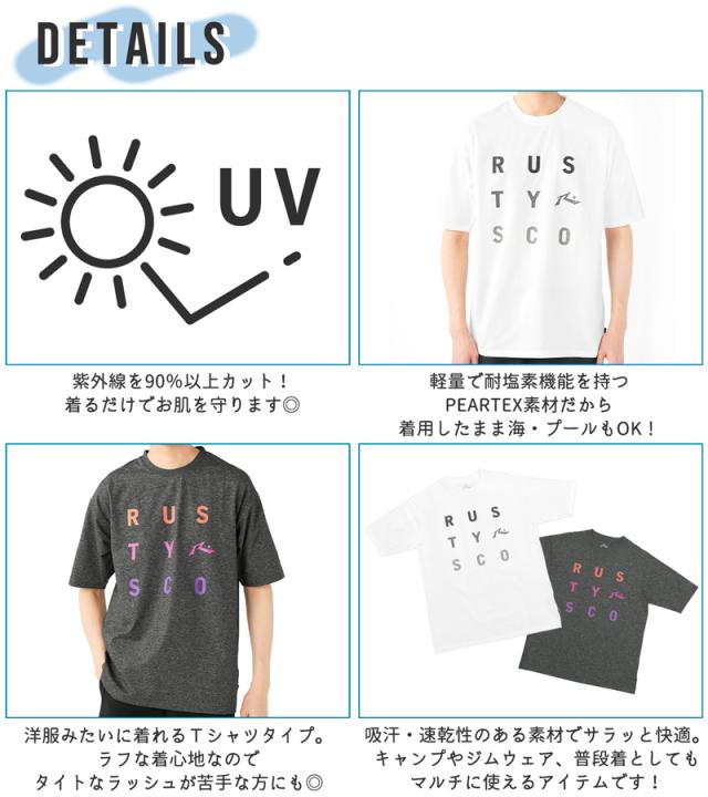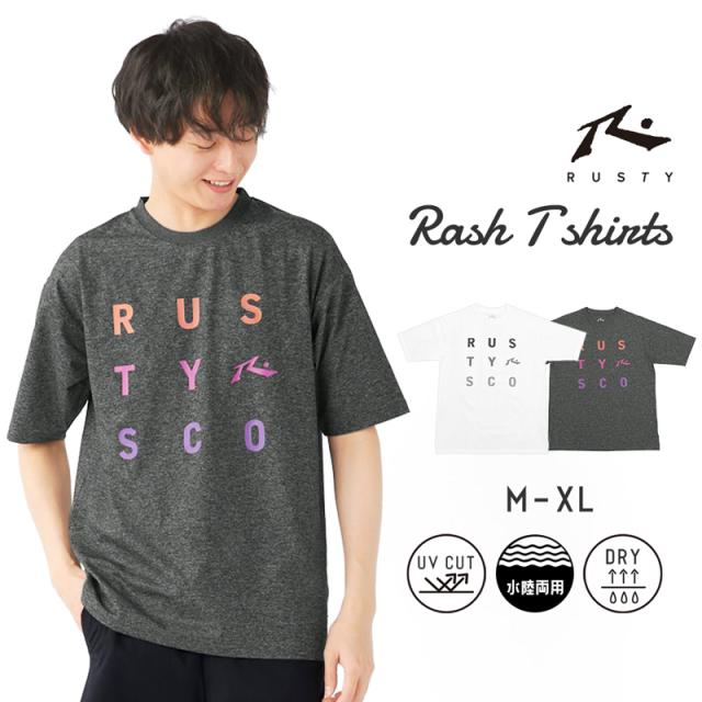 【22%OFF!!】 ラスティ メンズ 半袖 ラッシュ トップス ラッシュガード Tシャツ 紫外線 UV カット ゆったり 《レビュー記入でメール便無料》 ラフ 速乾 吸汗 耐塩素 水陸両用 シンプル 無地 ロゴ M L XL 海 旅行 キャンプ 914463 RUSTY 送料無料