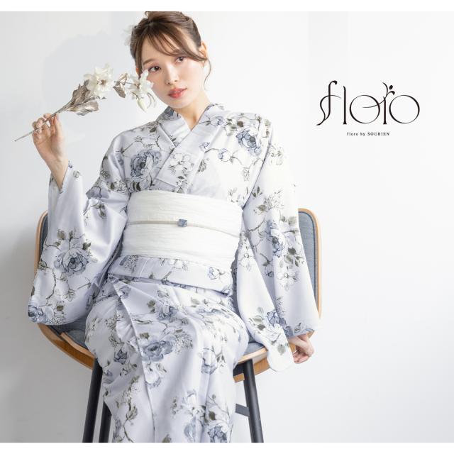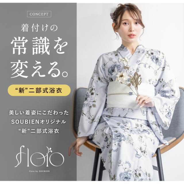 SOUBIENのプライベートブランド『floro by SOUBIEN』の女性用セパレート浴衣4点セットです。