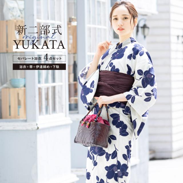 浴衣 セット レディース 二部式 セパレート 浴衣セット 兵児帯 2025 簡単 イージーケア 涼しい 吸水速乾 白 紺 ボルドー 花 大人 おしゃれ 可愛い 下駄 フリー 送料無料