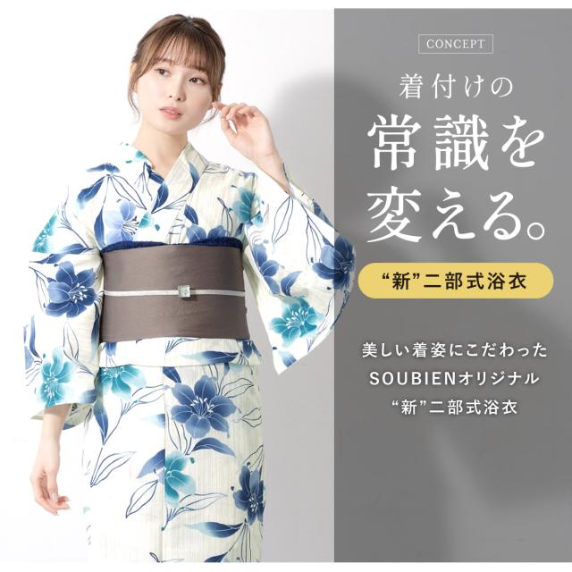 ※製造の都合上、浴衣とおはしょり布の色味が若干異なる場合がございます。予めご了承ください。