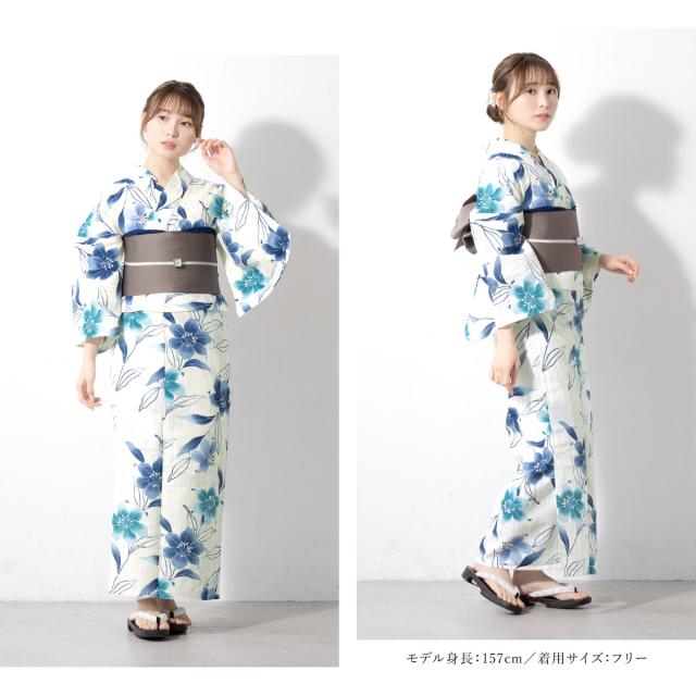 浴衣 セット レディース 二部式 セパレート 浴衣セット 半幅帯 2026 イージーケア 涼しい 吸水速乾 白 青 グレー 百合 花 大人 おしゃれ 可愛い 下駄 フリー 送料無料