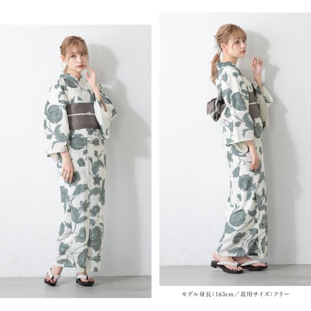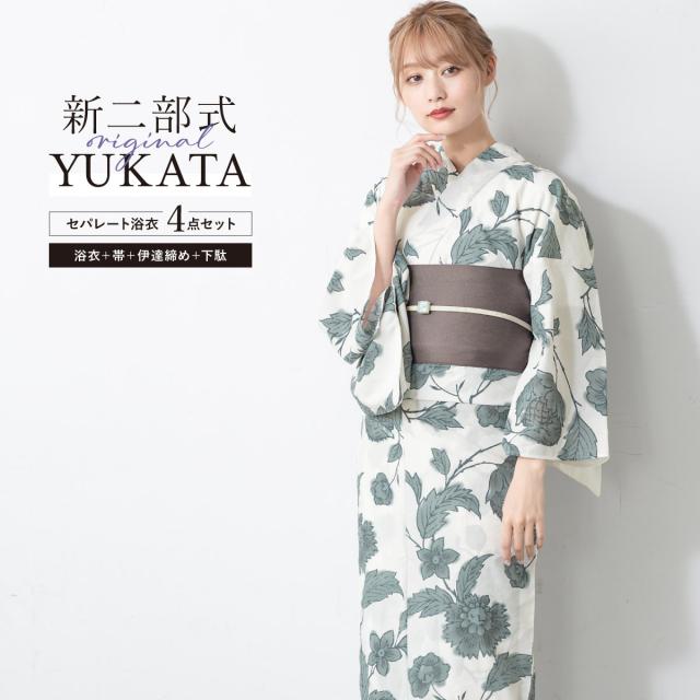 浴衣 セット レディース 二部式 セパレート 浴衣セット 半幅帯 2025 イージーケア 涼しい 吸水速乾 白 緑 グレー 花 くすみカラー レトロ 大人 おしゃれ 可愛い 下駄 フリー 送料無料