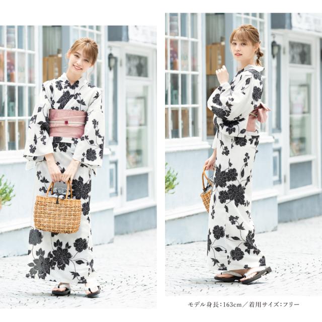 浴衣 セット レディース 二部式 セパレート 浴衣セット 半幅帯 2025 イージーケア 涼しい 吸水速乾 白 黒 ピンク 牡丹 花 レトロ 大人 おしゃれ 可愛い 下駄 フリー 送料無料
