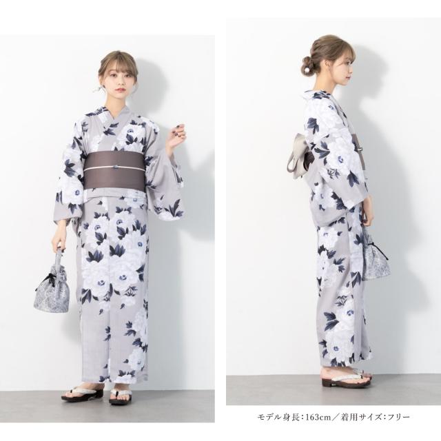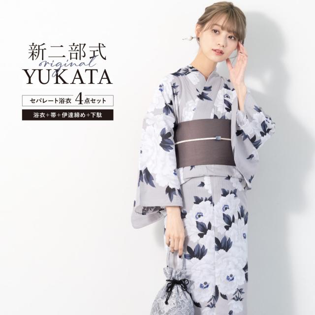 浴衣 セット レディース 二部式 セパレート 浴衣セット 半幅帯 2025 イージーケア 涼しい 吸水速乾 白 グレー 牡丹 花 くすみカラー 大人 おしゃれ 可愛い 下駄 フリー 送料無料