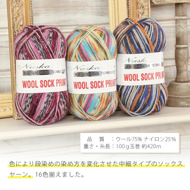毛糸 ソックヤーン 中細 内藤商事 NASKA ウールソックプリント トルコ製 ソックヤーン 靴下 ウール かぎ針 棒針 ニット 手編み 編み物 レディース 手芸 ハンドメイド 靴下 帽子 マフラー スヌード ストール セーター ベスト