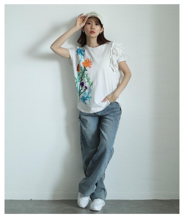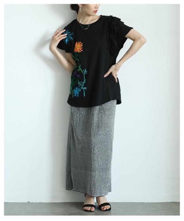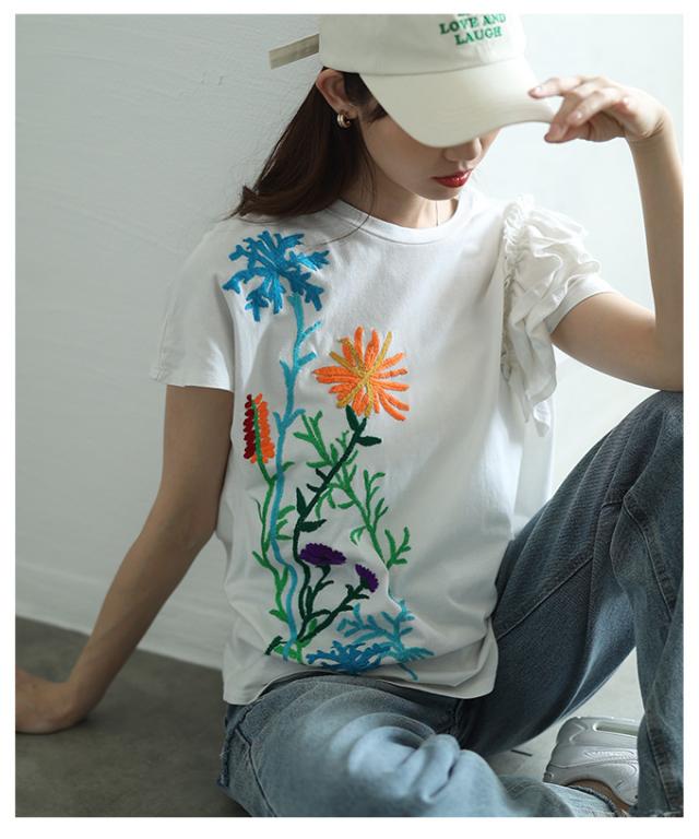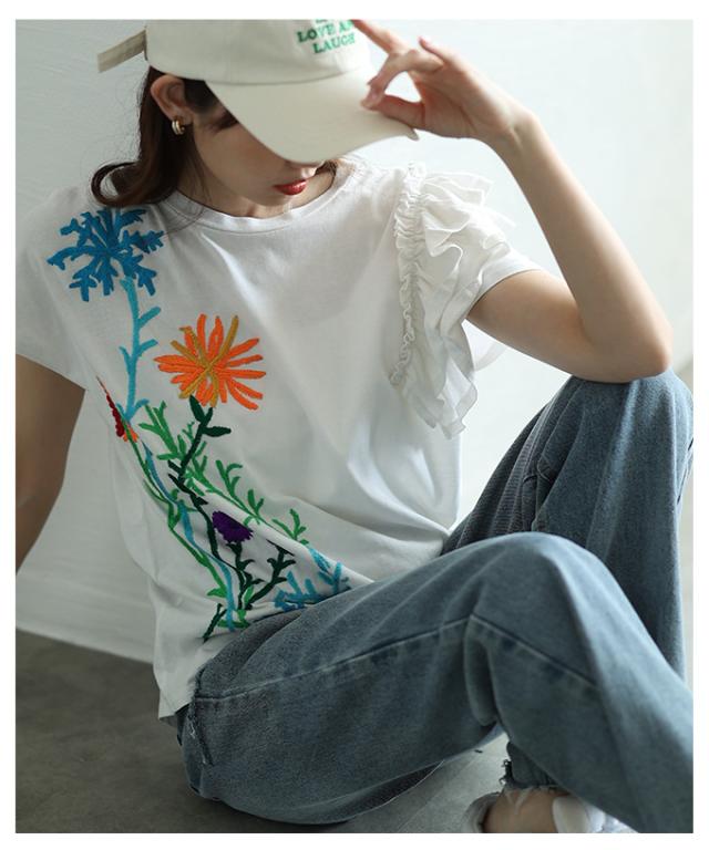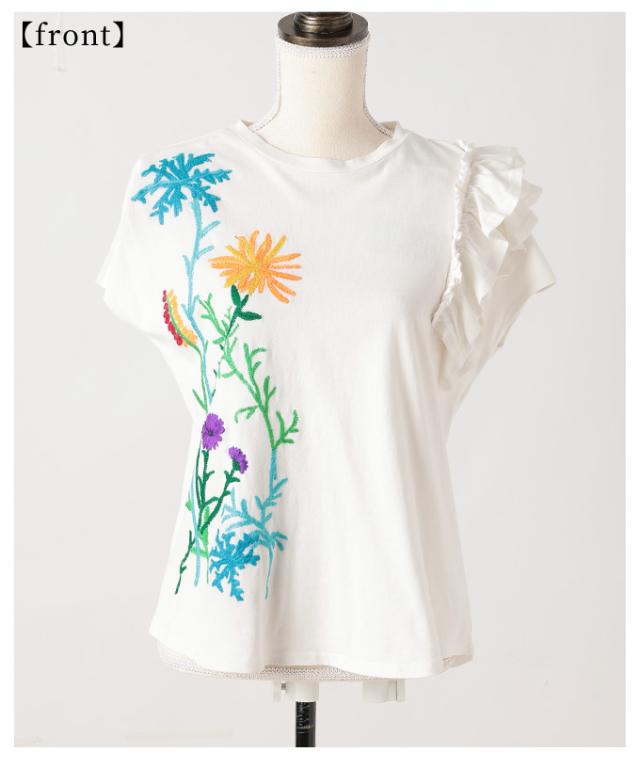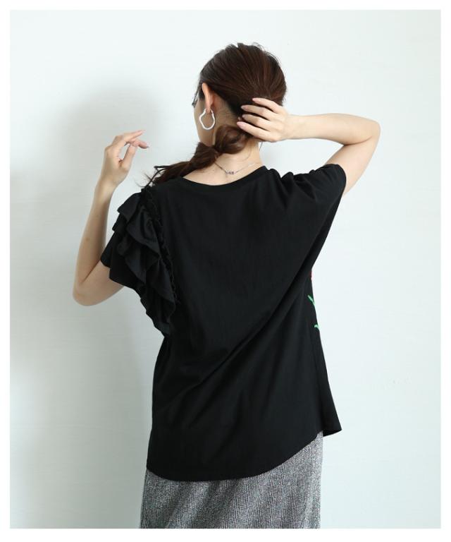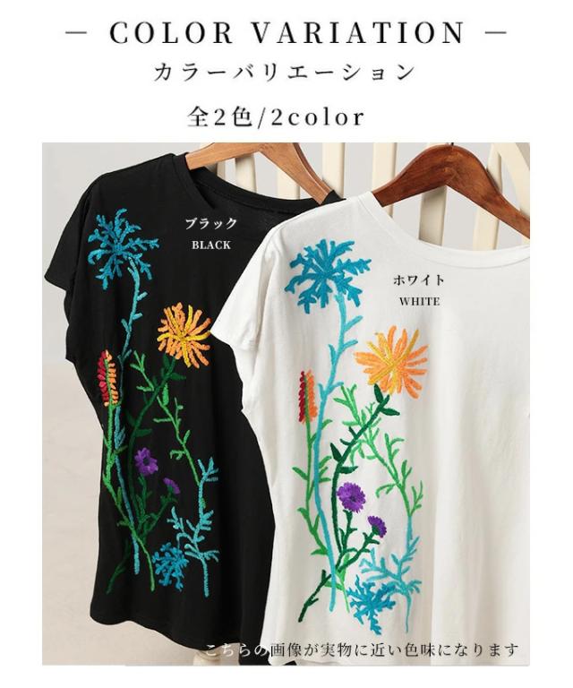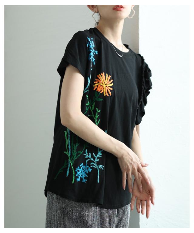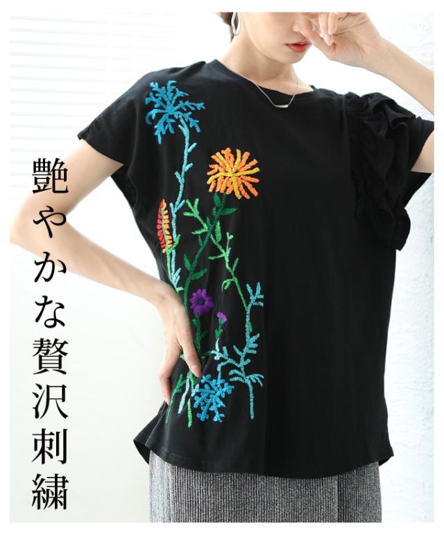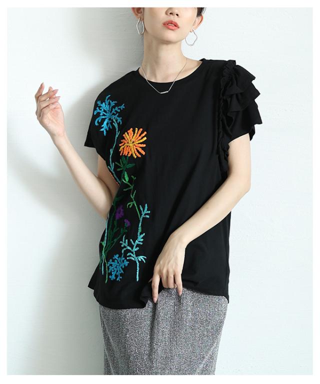 春新作 艶やかな花を添えたインド手刺繍フリルトップス レディース ファッション トップス カットソー Tシャツ ブラック 黒 白 大人可愛い 40代 レディースファッション 50代女性 ファッション 60代 ミセスファッション サワアラモード sawaalamode otona alwk-0243