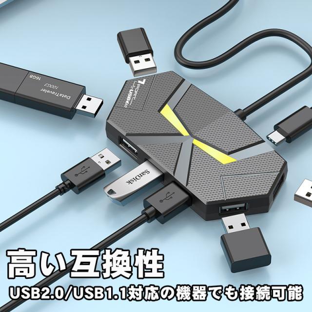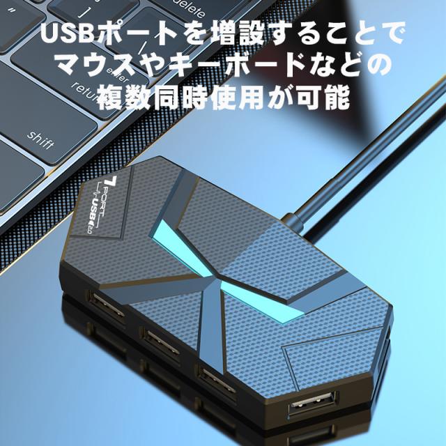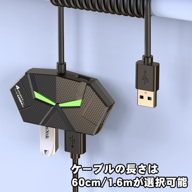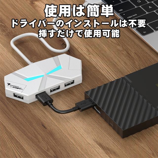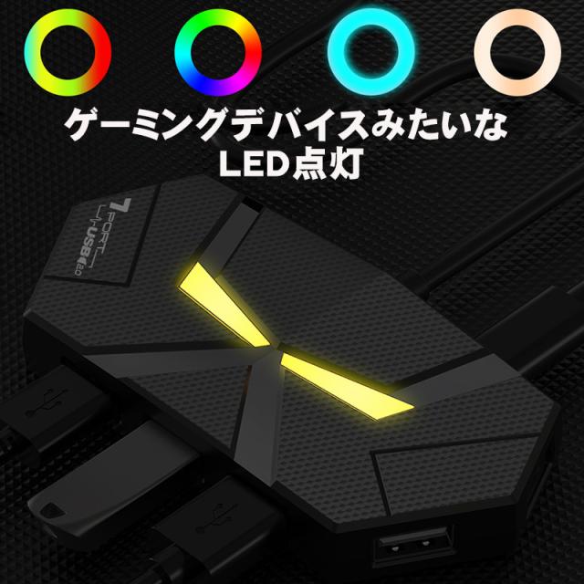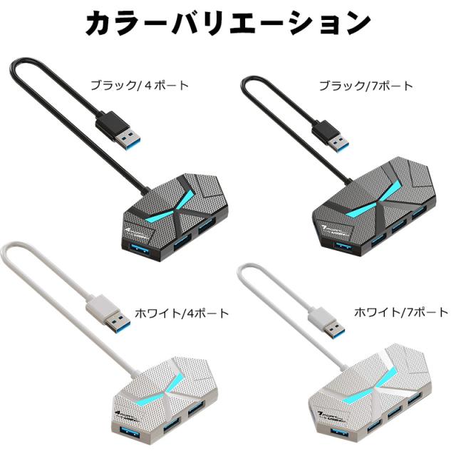 USBハブ 4ポート 7ポート USB2.0 増設 1.2m 60cm LED点灯 ゲーミング 簡単 便利 ブラック ホワイト