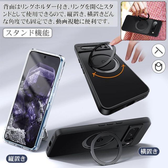 Magsafe充電対応 pixel10a ケース リング付き pixel10proxl ケース pixel10pro ケース 8a 8pro 8 クリア スマホケース グーグルピクセル10a googlepixel10 ケース googlepixel9a ケース 耐衝撃 スタンド機能 おしゃれ オシャレ ワイヤレス充電 背面カバー メッキ加工 車載