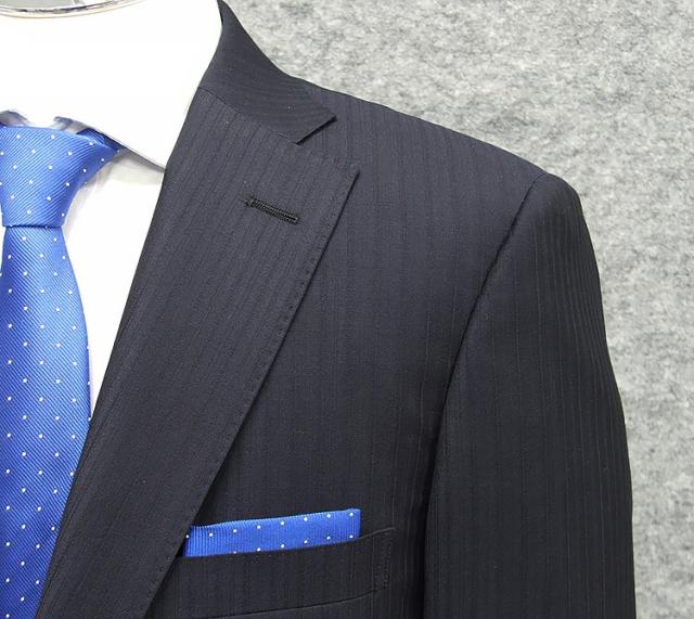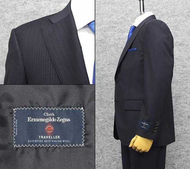春夏〜通年物 濃紺/ストライプ [Ermenegildo Zegna] ゼニア TRAVELLER使用 セミスタイリッシュ2釦スーツ [AB体][BB体] EZ8612-13
