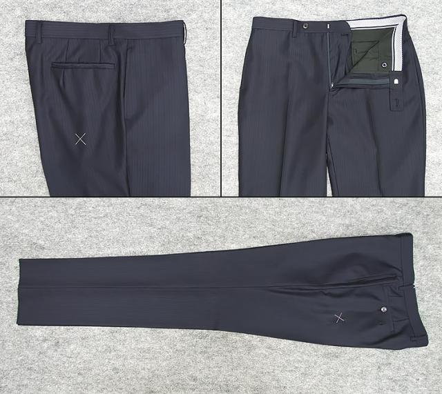 従来の当店取扱いの「ゼニア」スタイリッシュスーツと比較した場合、スラックスのワタリ部分に若干の余裕を持たせたのが大きな特徴です。