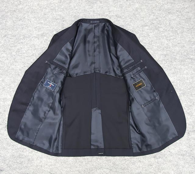 ☆春夏〜通年☆背抜き☆濃紺ストライプ
