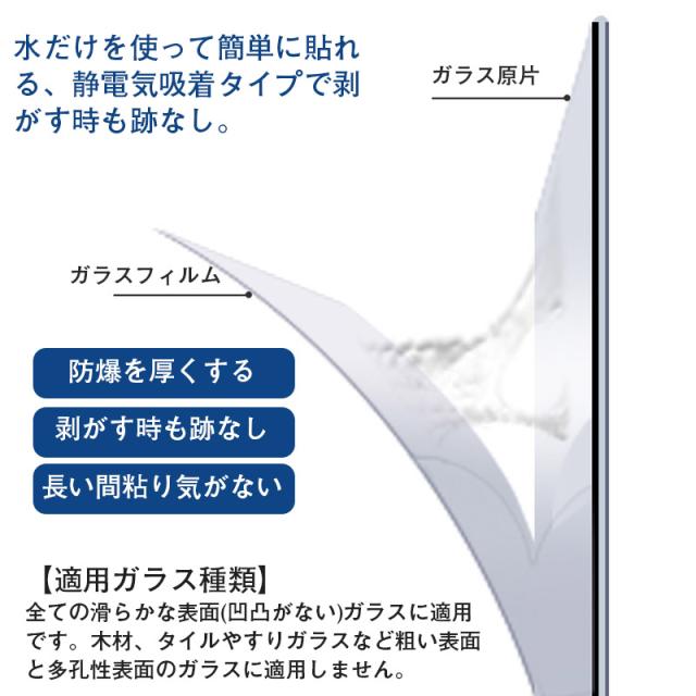 ★水だけを使って簡単に貼れる、静電気吸着タイプで剥がす時も跡なし。