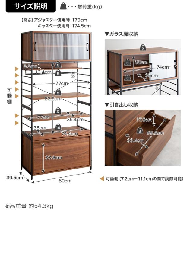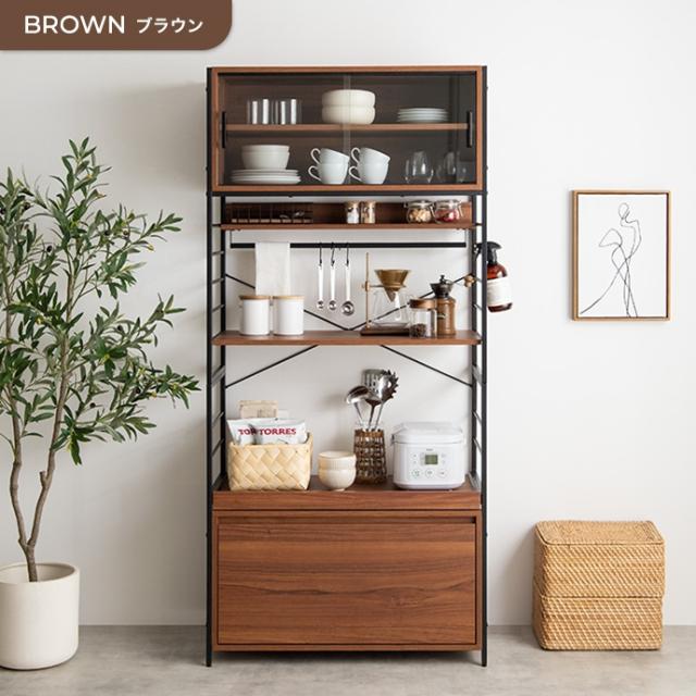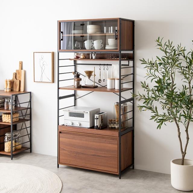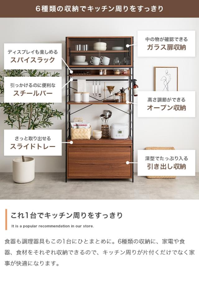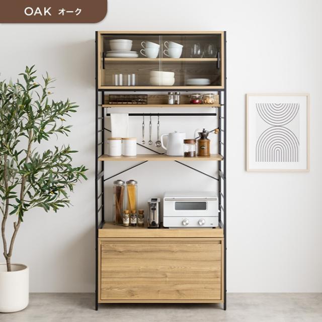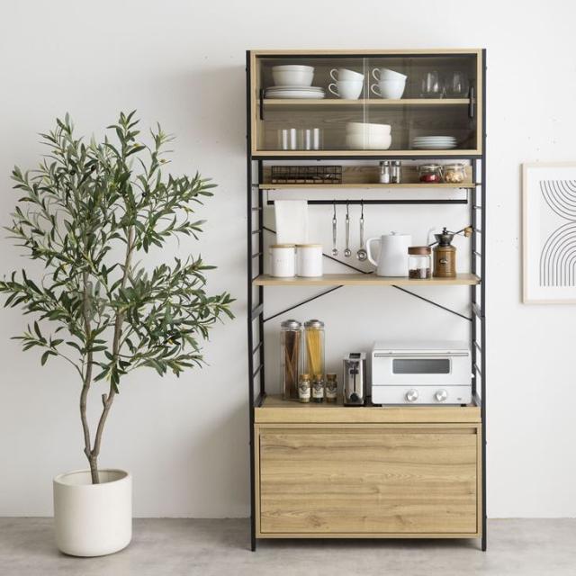 ★メーカー保証付★ 食器棚 幅80cm スライドトレー 脚部付替え可能 メーカー直送 送料無料