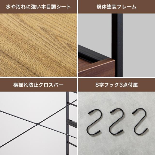 5種類の収納スペースにより、キッチンに不可欠な家電や雑貨・食器等をまとめて1台に収納可能。