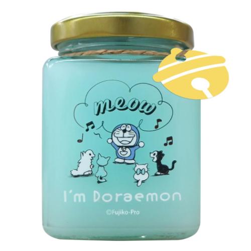 透明なガラス容器にI'm Doraemonのプリントが入ったオシャレなジェルフレグランスです