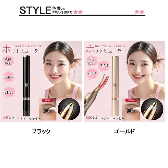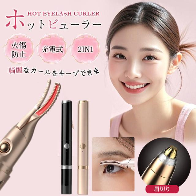 ホットビューラー ビューラー まつ毛 まつげ挟む クリップ 2in1 USB充電 カール 24時間キープ 眉切り 温度調節 火傷防止 SNS話題