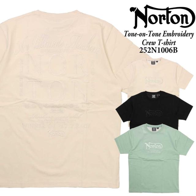 メール便 発送 Norton ノートン 服 半袖 Tシャツ 252N1006B 同色 刺繍 クルー Tシャツ 刺繍 プリント アメカジ バイカー メンズ