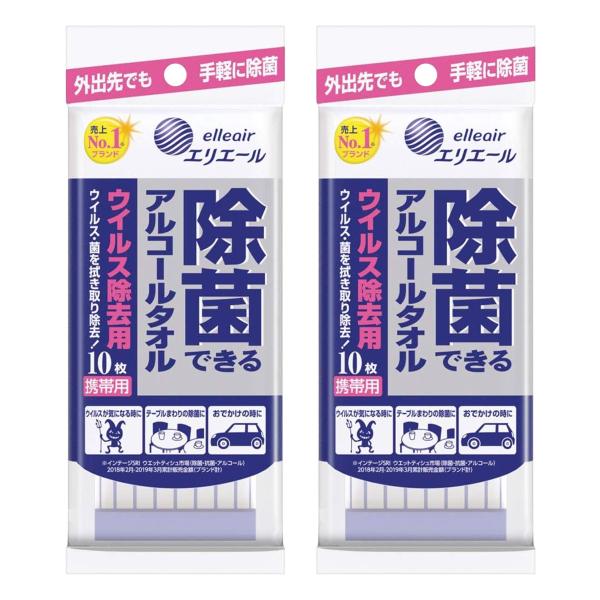 エリエール 除菌できるアルコールタオル ウイルス除去用 携帯用 10枚入×2個セット メール便送料無料