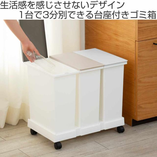 ゴミ箱 台座付オープンペール 3個セット 分別 ( ごみ箱 20L×3個 3分別 ワンタッチ 台座 ふた付き キッチン 角型 シンプル 可燃ゴミ ペットボトル 缶 ぶんべつ キャスター付き 袋止め付き )