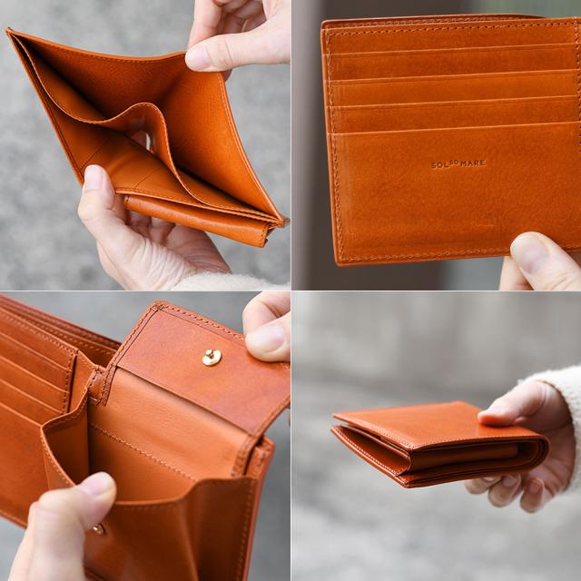 二つ折り財布 SOLSOMARE ソルソマーレ ハーフウォレット メンズ 本革 レザー 牛革 イタリアンレザー イタリア革 経年変化 日本製 トラモント 職人 ユニセックス メイドインジャパン 2つ折り 二ツ折り レディース シンプル スタンダード プレゼント ギフト