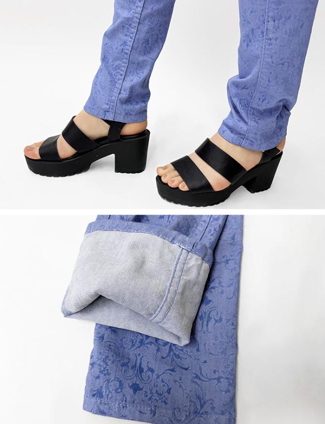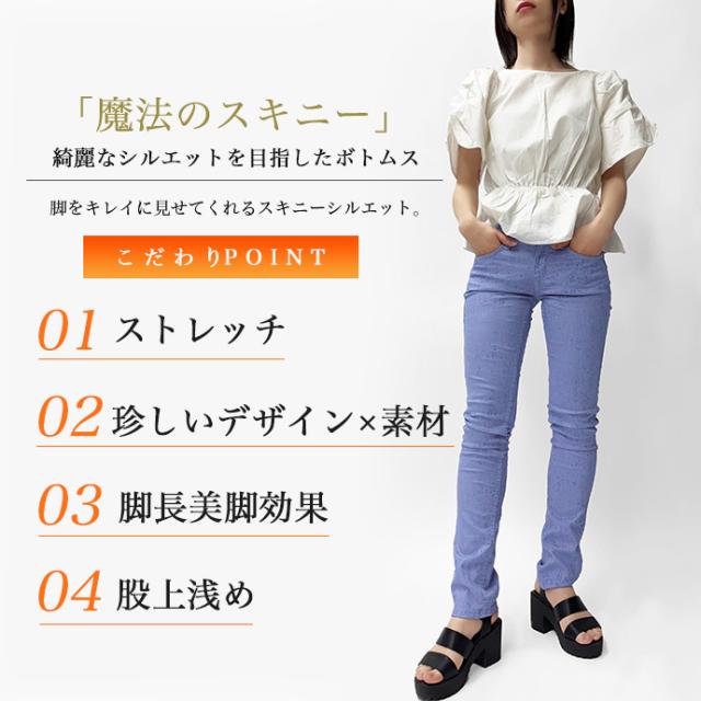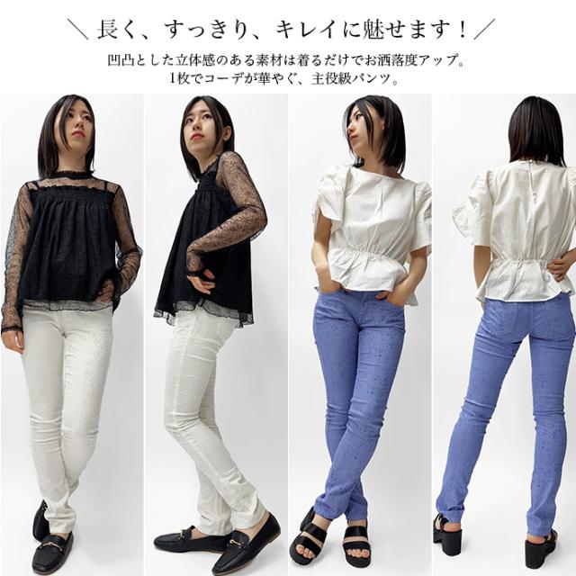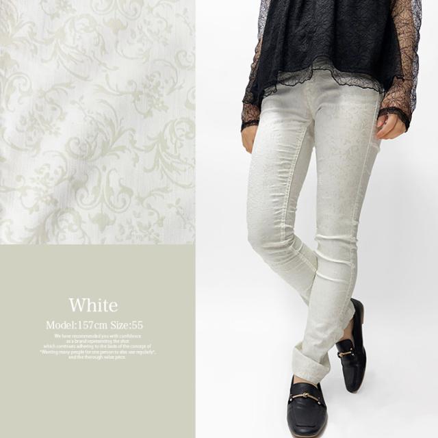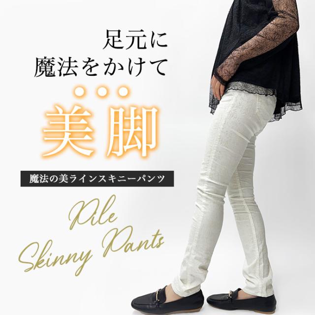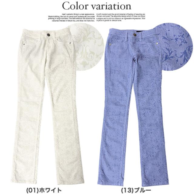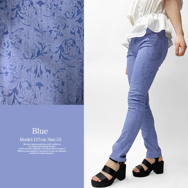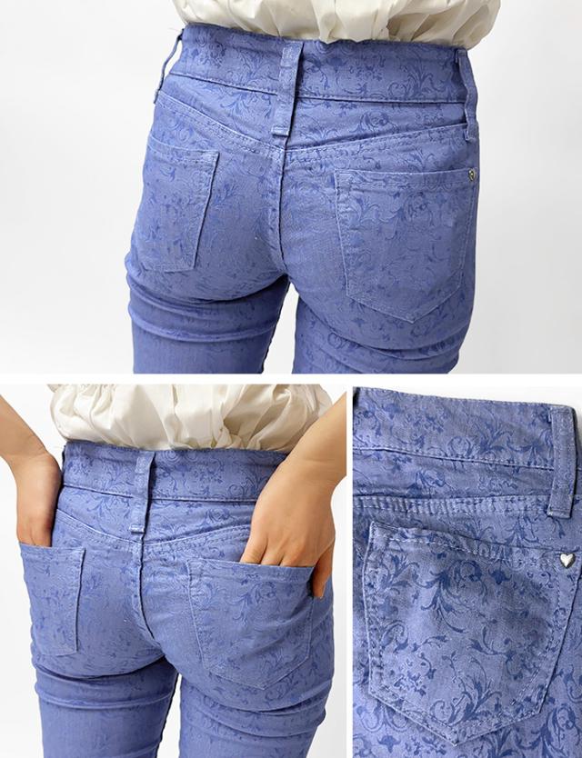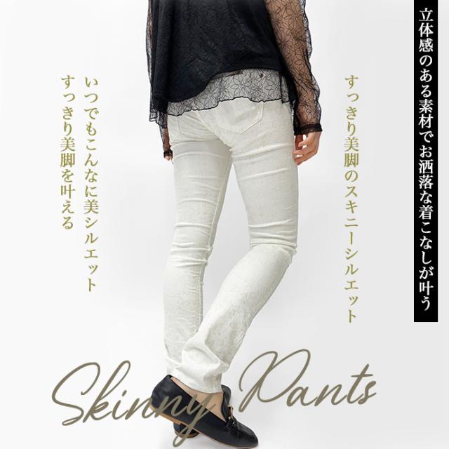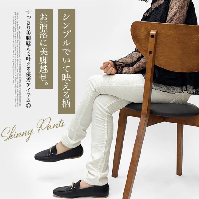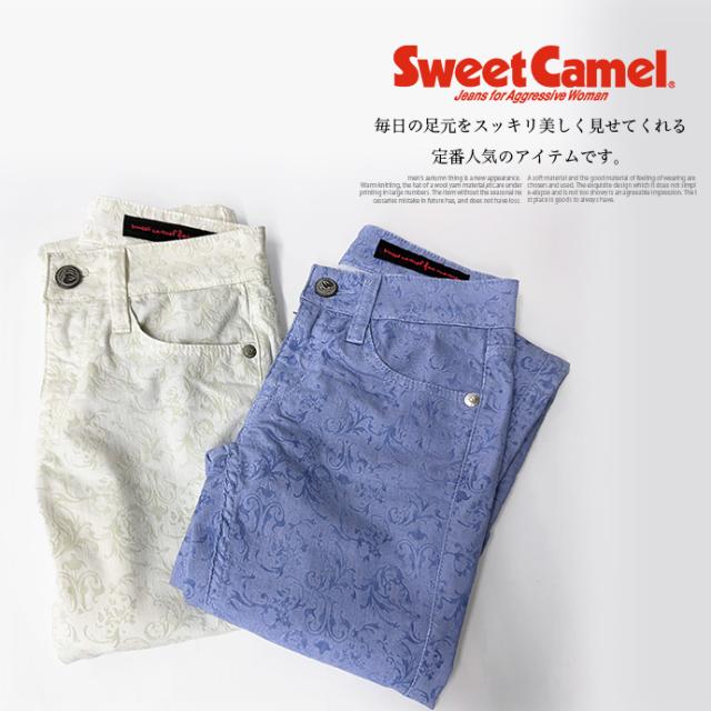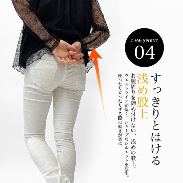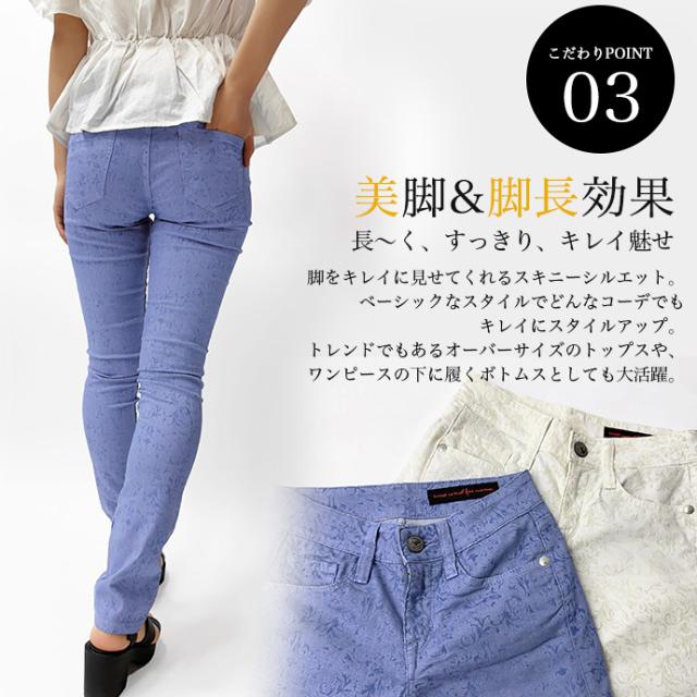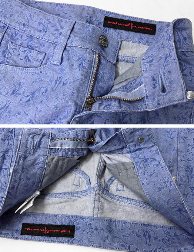 スキニー パンツ レギパン 柄パンツ ボトムス ストレッチ 細身 股上浅め 小さいサイズ 美脚 脚長 植物柄 パイル加工 ツイル Sweet Camel スイートキャメル レディース 送料無料