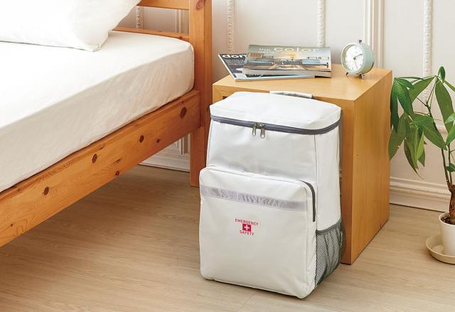 スタイリッシュな避難用リュックに災害時に役立つ防災グッズをひとまとめにした一人用防災セット。