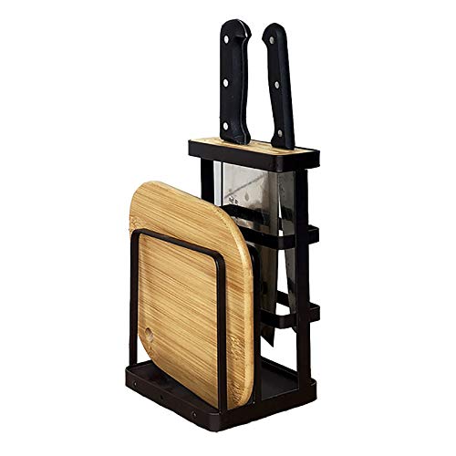 まな板スタンド 包丁スタンド 鉄製 まな板立て 水切り包丁 まな板 鍋ふた 木製 包丁立て ブラウン,トレー付き