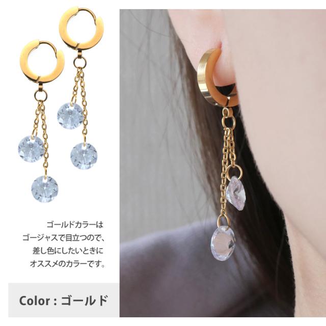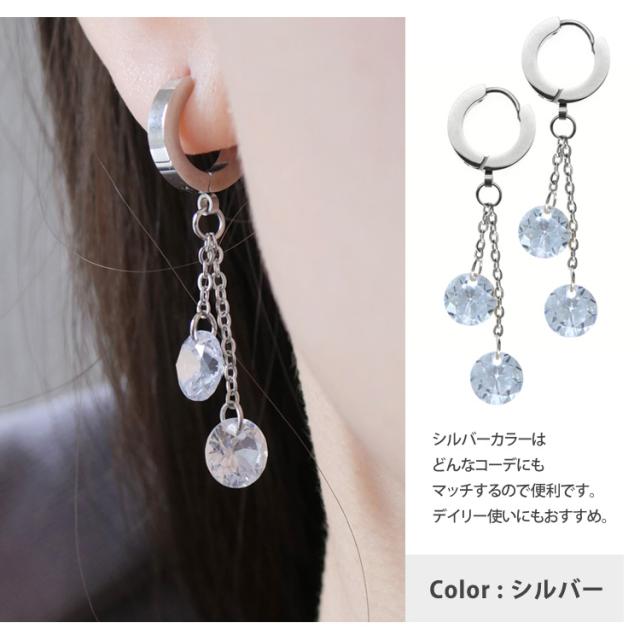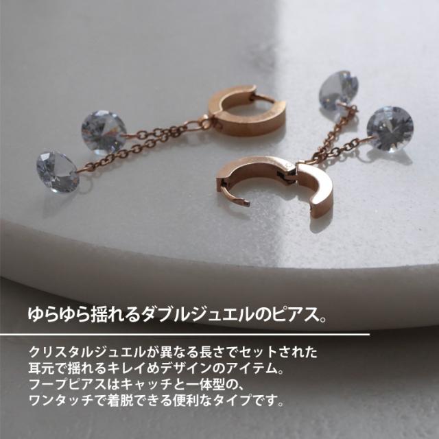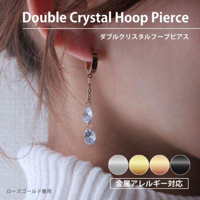 ピアス 金属アレルギー対応 ステンレスピアスステンレスピアス ダブルクリスタルフープピアス 両耳用 316L