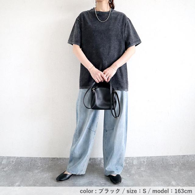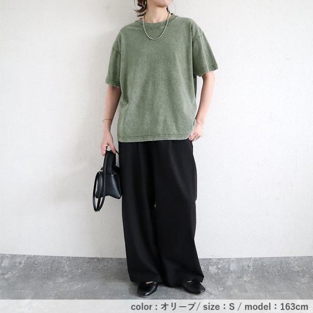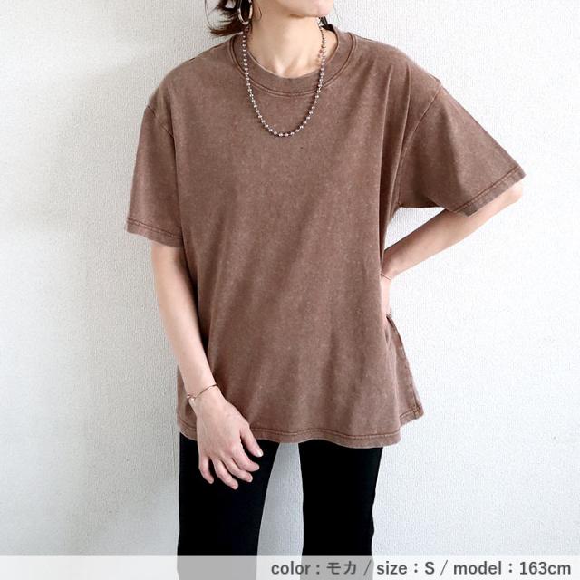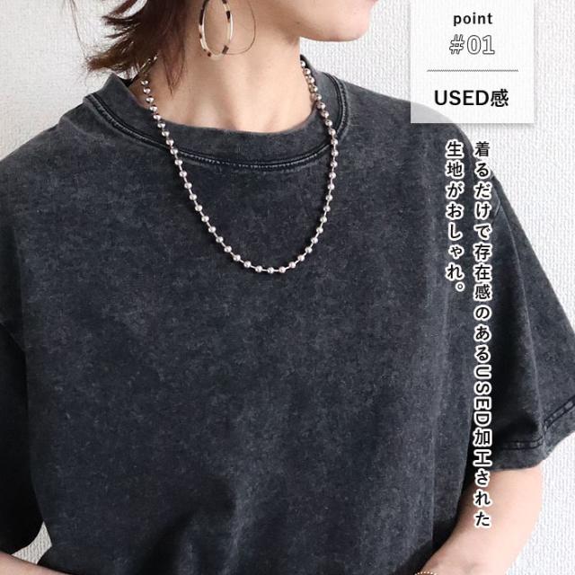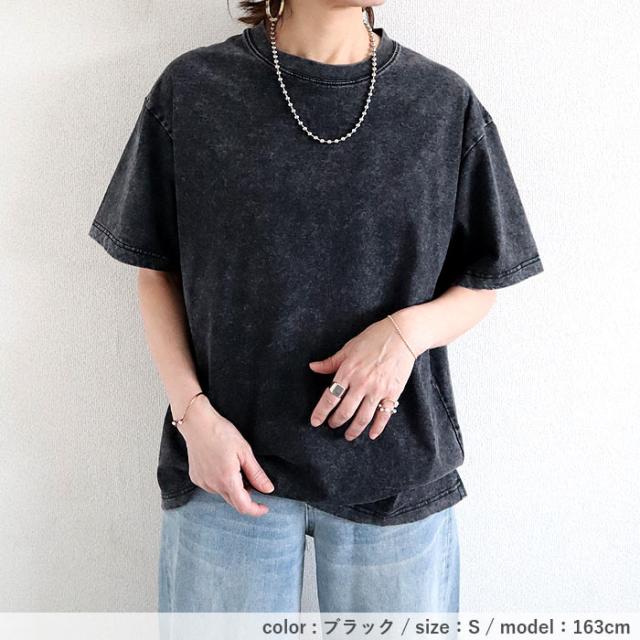春新作 トップス レディース Tシャツ ウォッシュ加工 春 夏 黒 おしゃれ 無地 半袖 綿 綿100% コットン シンプル[郵2]^t1084^ ★