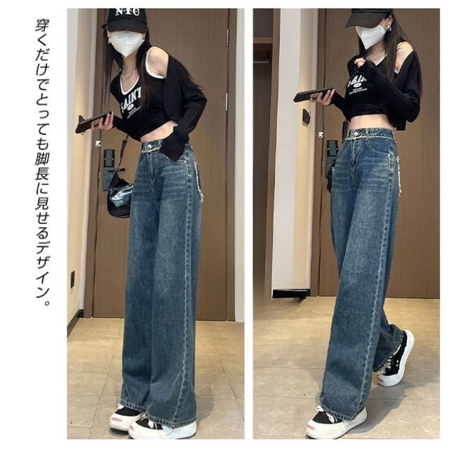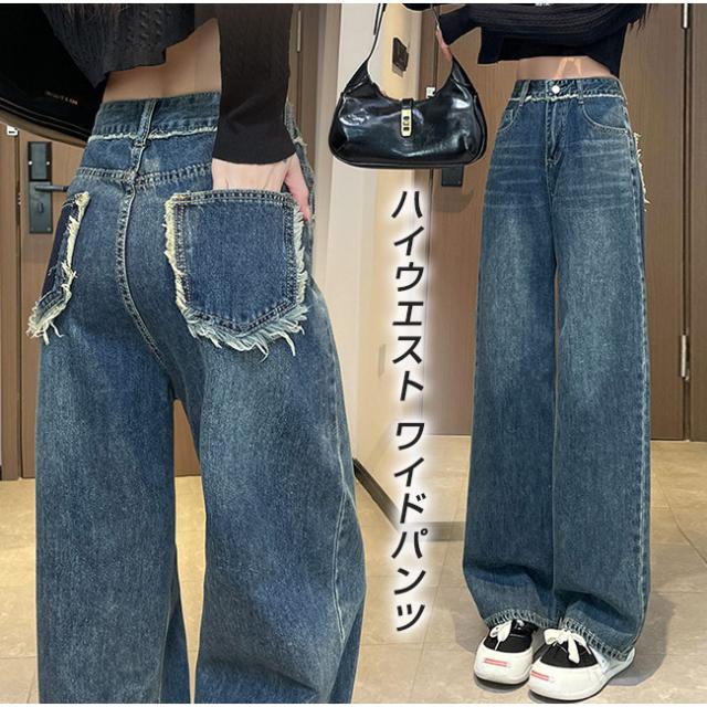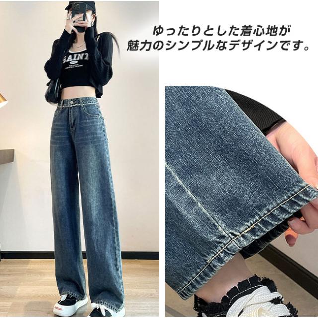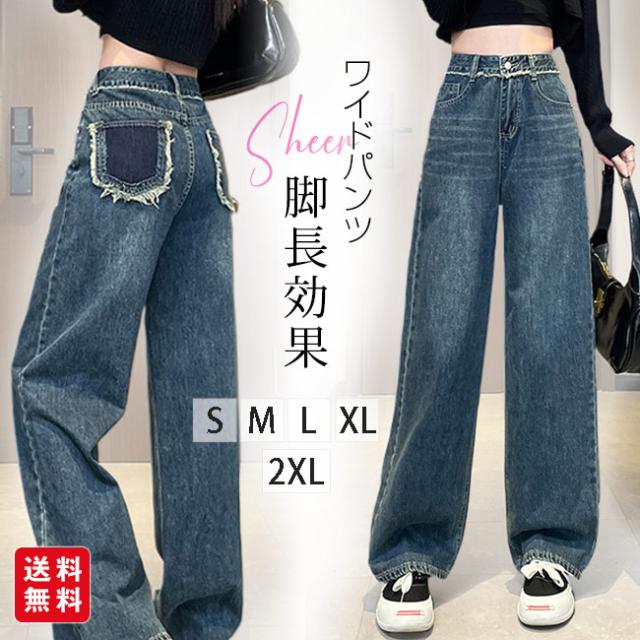 春新作 ワイドパンツ デニム ハイウエスト レディース ジーンズ デニムパンツ 春夏 美脚 大きいサイズ 脚長効果 着痩せ ポイント消化 母の日