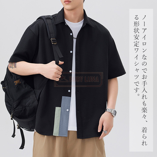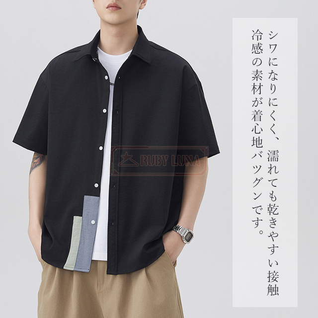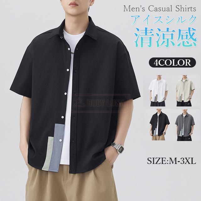 赤字覚悟 送料無料 シャツ メンズ 接触冷感 アイスシルク シャツ 冷感 ひんやり 春夏 涼しい 半袖 ワイシャツ カジュアル 五分袖シャツ シワにならない ノーアイロン ビッグシルエット オーバーサイズ ビッグシャツ