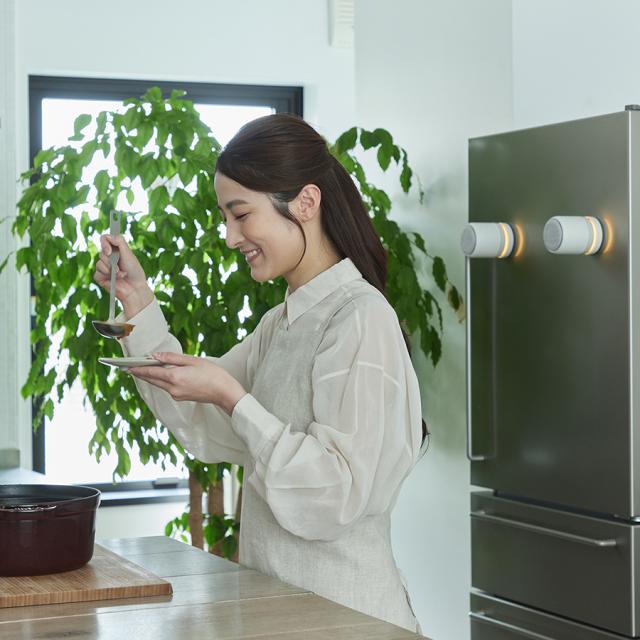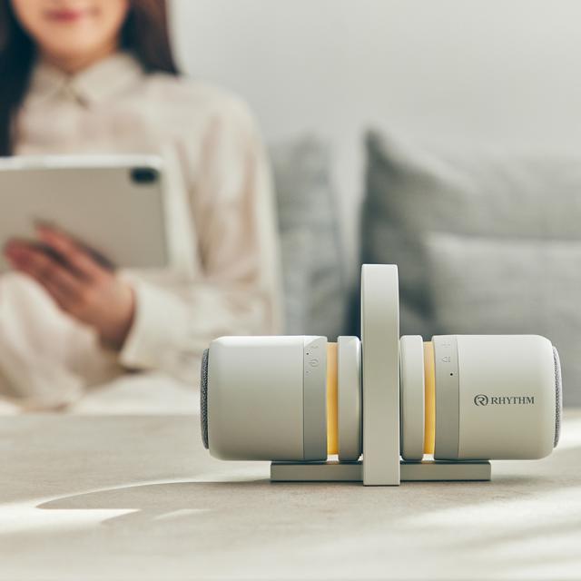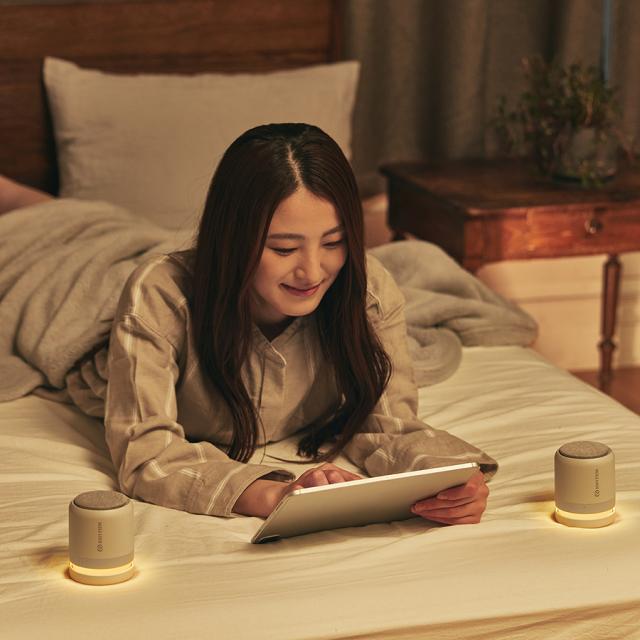 また、電源を入れるとやさしく灯るあかりは、間接照明のように空間をあたたかく照らし、音と光の両方からくつろぎをサポートしてくれます。