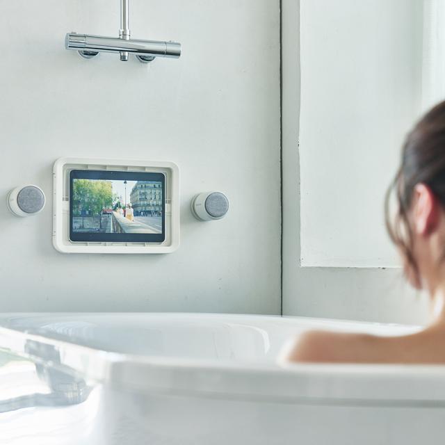 防水仕様なので、ユニットバスの壁に取り付ければたちまちプライベートシアターに早変わり。おふろ時間が、癒しのひとときへと変わります。