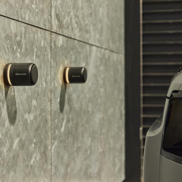 背面に内蔵されたマグネットで壁や金属面にスマートに貼り付けることができ、専用スタンドに置くだけで自動充電にも対応。使い勝手とデザイン性を兼ね備えたスピーカーです。