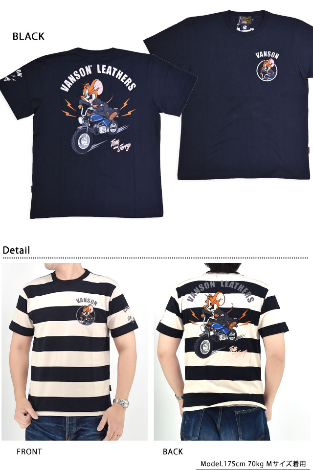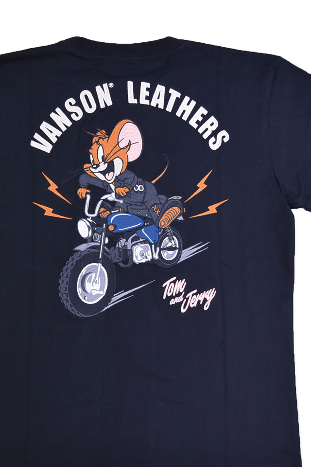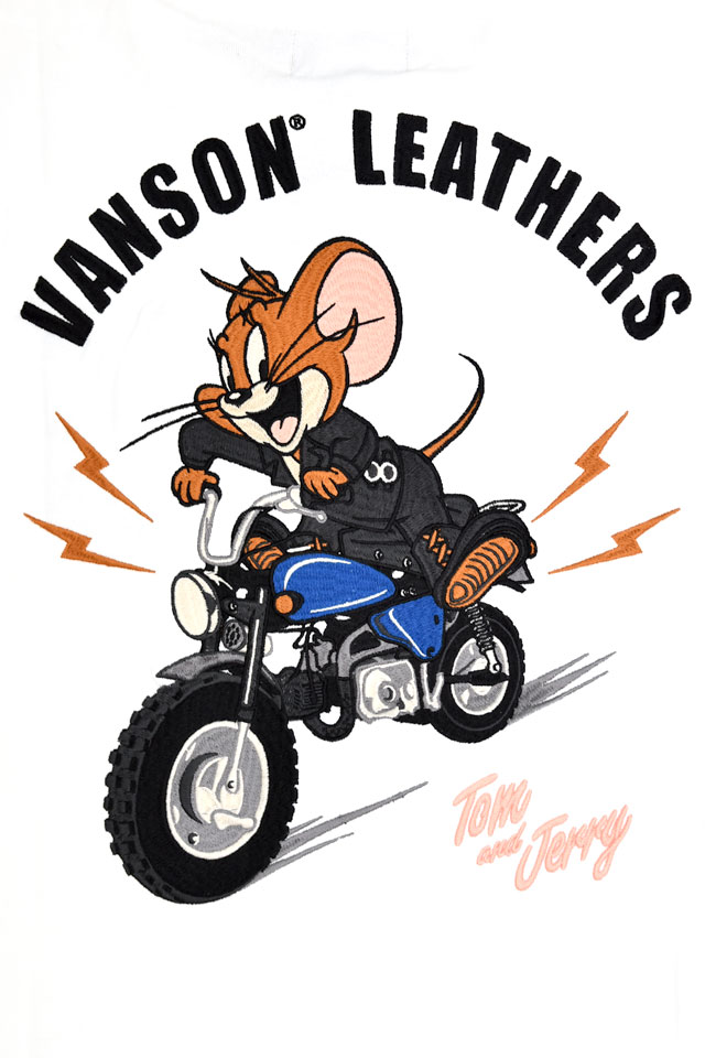 vanson×TOM&JERRY 天竺半袖Tシャツ vanson TJV-2518 バンソン ヴァンソン トムとジェリー 刺繍 バイカー