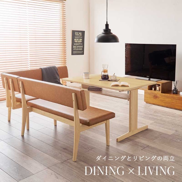 お部屋に合わせてレイアウトの変更ができ、天然木のシルエットと高級感のあるベンチシートがリビングダイニングのくつろぎ空間を演出。