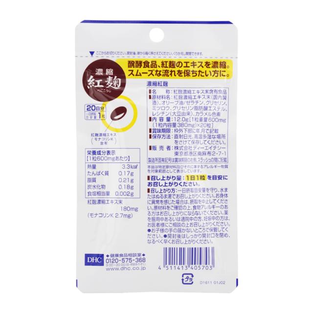 DHC ディーエイチシー 濃縮紅麹 20日分 20粒 栄養補助食品 サプリメント 健康食品 モナコリンK酵母 酵素サプリメント[ギフトラッピング対応]