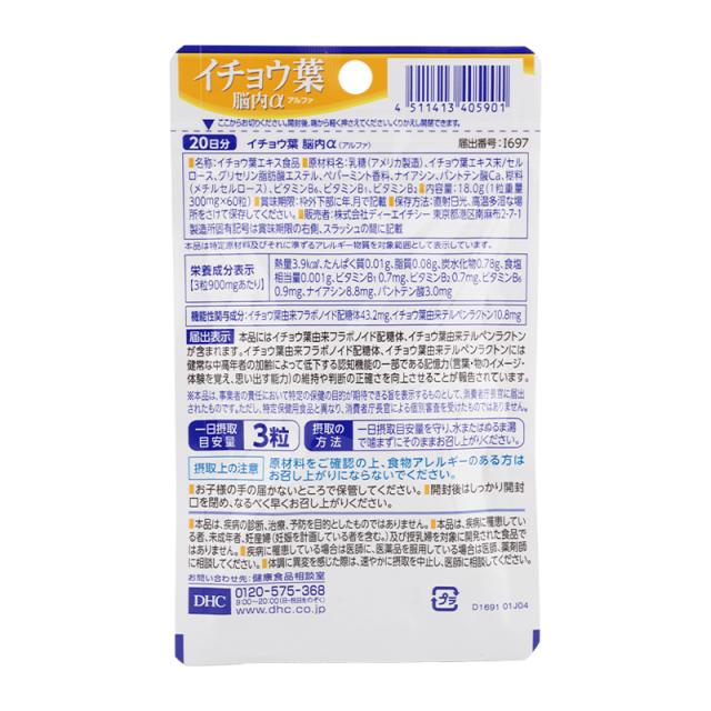 [5個セット]DHC ディーエイチシー イチョウ葉 脳内α アルファ 20日分 60粒 栄養補助食品 サプリメント 健康食品 記憶力 中高年者[ギフトラッピング対応]