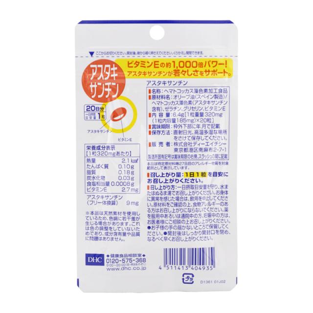 [5個セット]DHC ディーエイチシー アスタキサンチン 20日分 20粒 栄養補助食品 サプリメント 健康食品 ヘマトコッカス 美容 健康[ギフトラッピング対応]